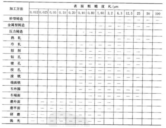 三、常用加工方式和能达到的粗糙度值
